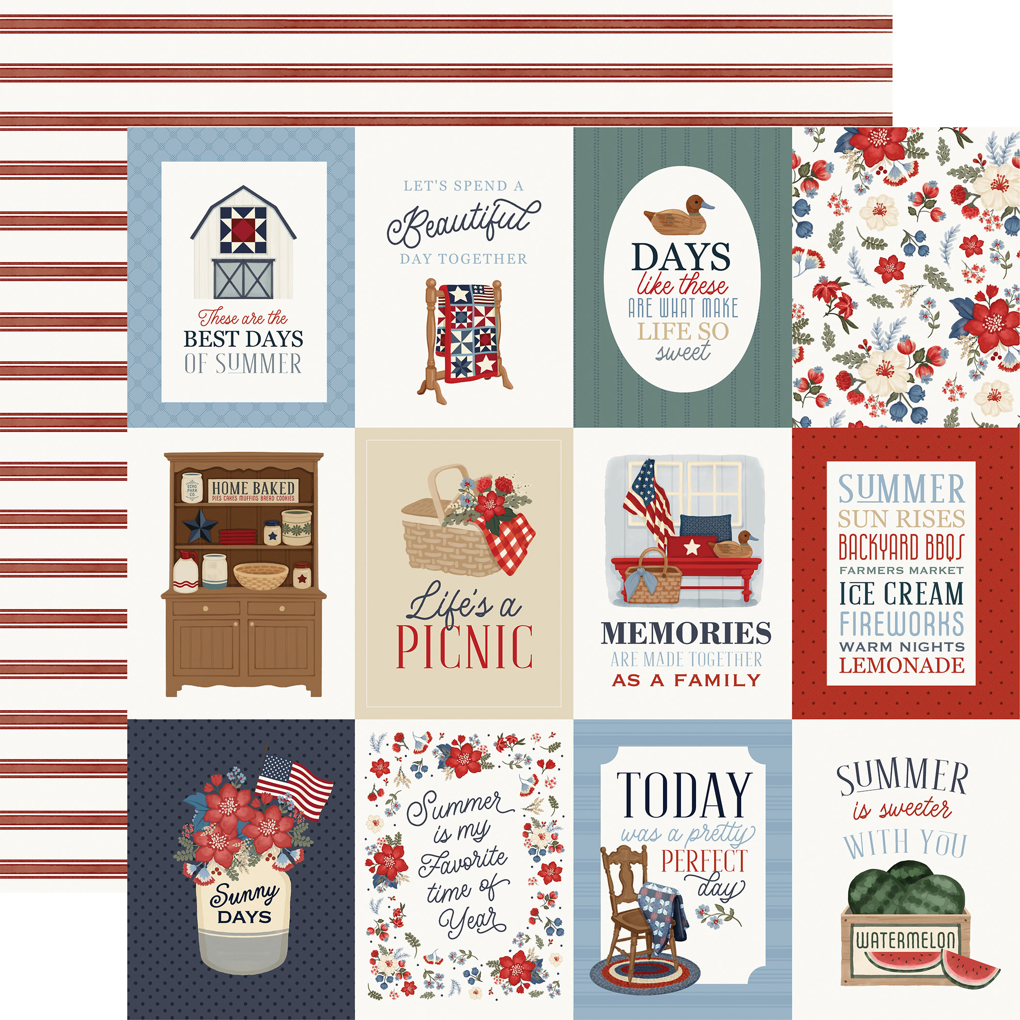 .. Americana Summer: 3x4 Journaling Cards 12x12 Patterned Paper