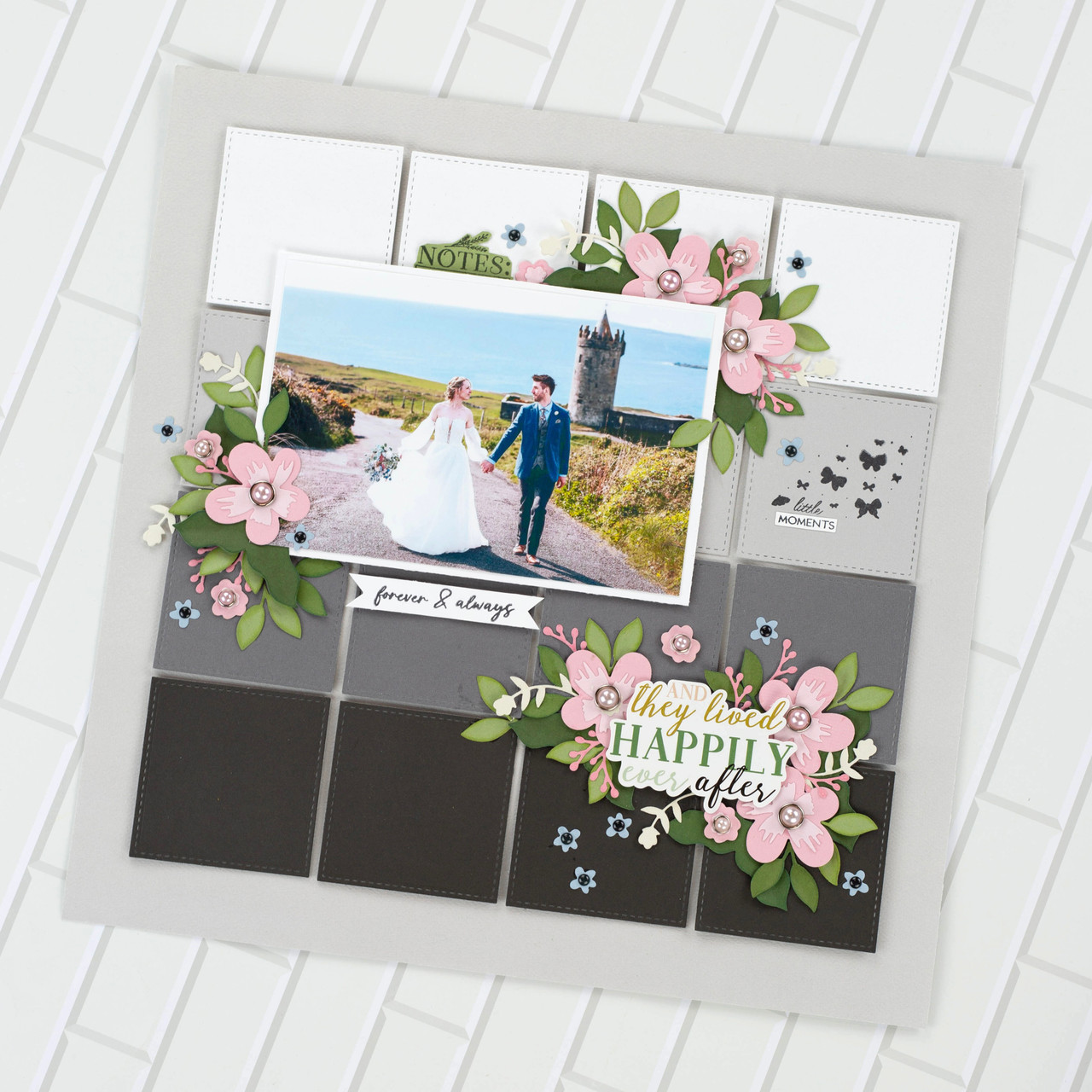 Celebrate your special day with this romantic wedding layout featuring "Essentials" collection! Thoughtfully layered with stitched square panels and adorned with delicate blooms, this design beautifully frames a cherished photo. Perfect for preserving wedding memories with timeless charm and dimension. Check out the "Essentials" collection here!