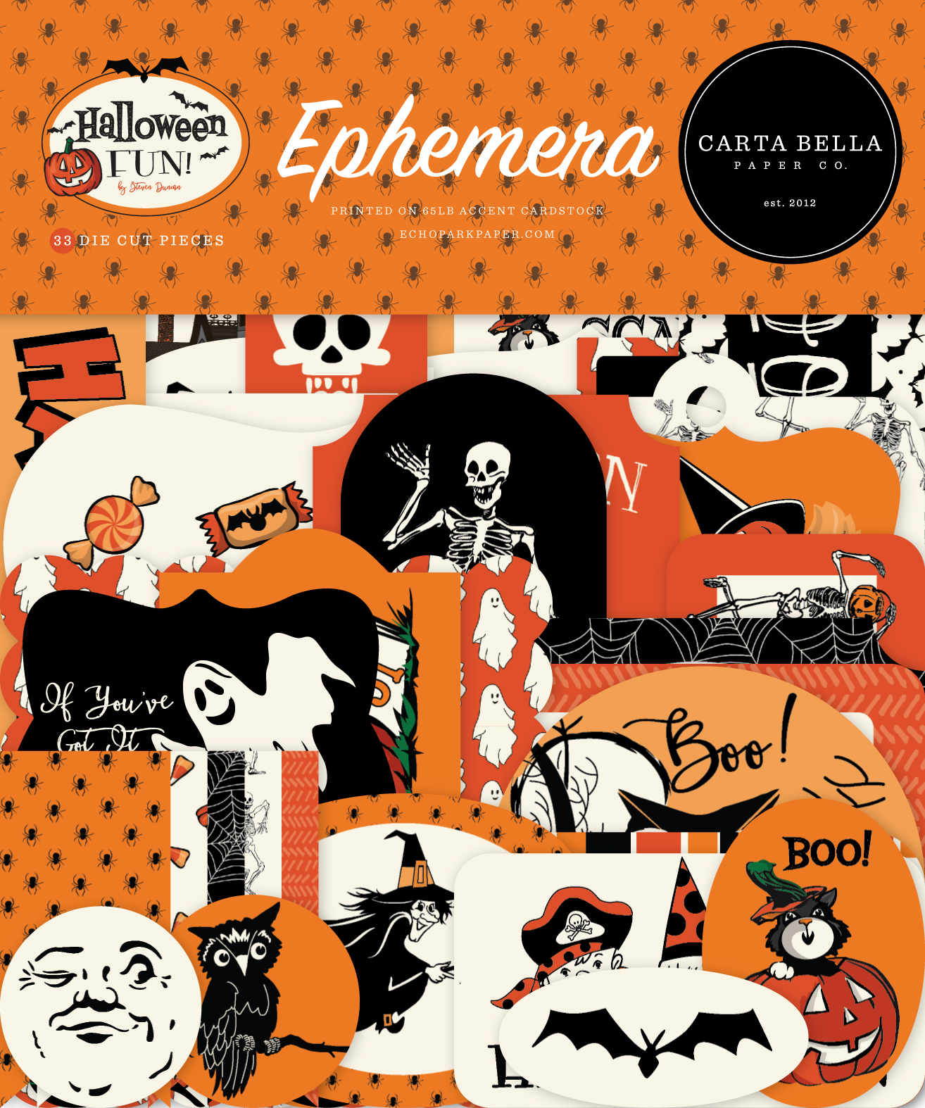 This Ephemera pieces pack includes 33 individually cut cardstock pieces that feature elements and designs that coordinate with our Halloween Fun collection. All of our Carta Bella paper products are both acid free and lignin free and made in the USA.