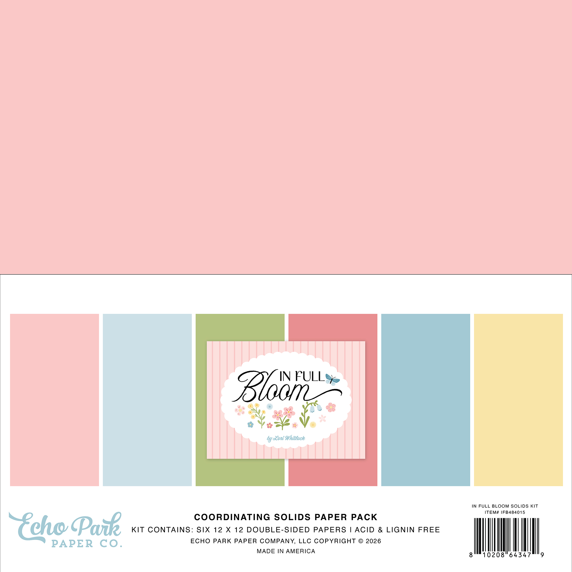 This Solids Kit includes six 12” x 12” papers that feature bright coordinating colors on each side. All of our Echo Park Paper Co. solids paper products are both acid free and lignin free, printed on 65 lb textured cardstock, and made in the USA.