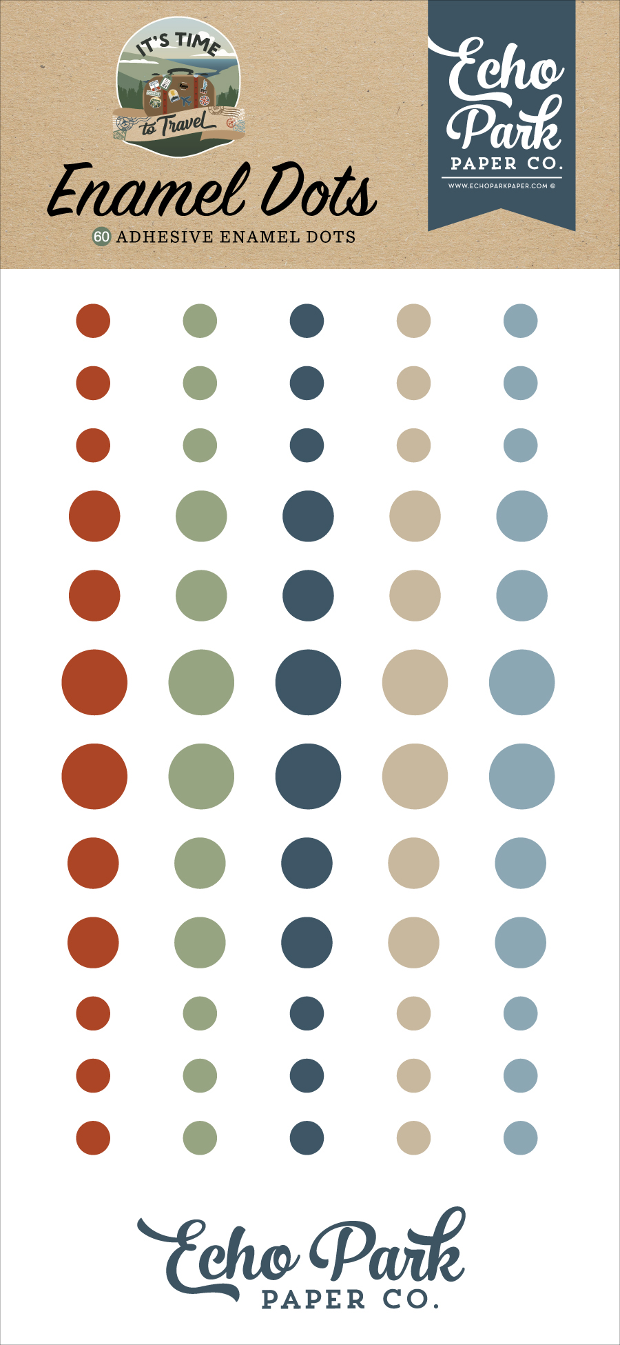 These adhesive enamel dots include 60 dots per package that come in five different colors and in three different sizes.