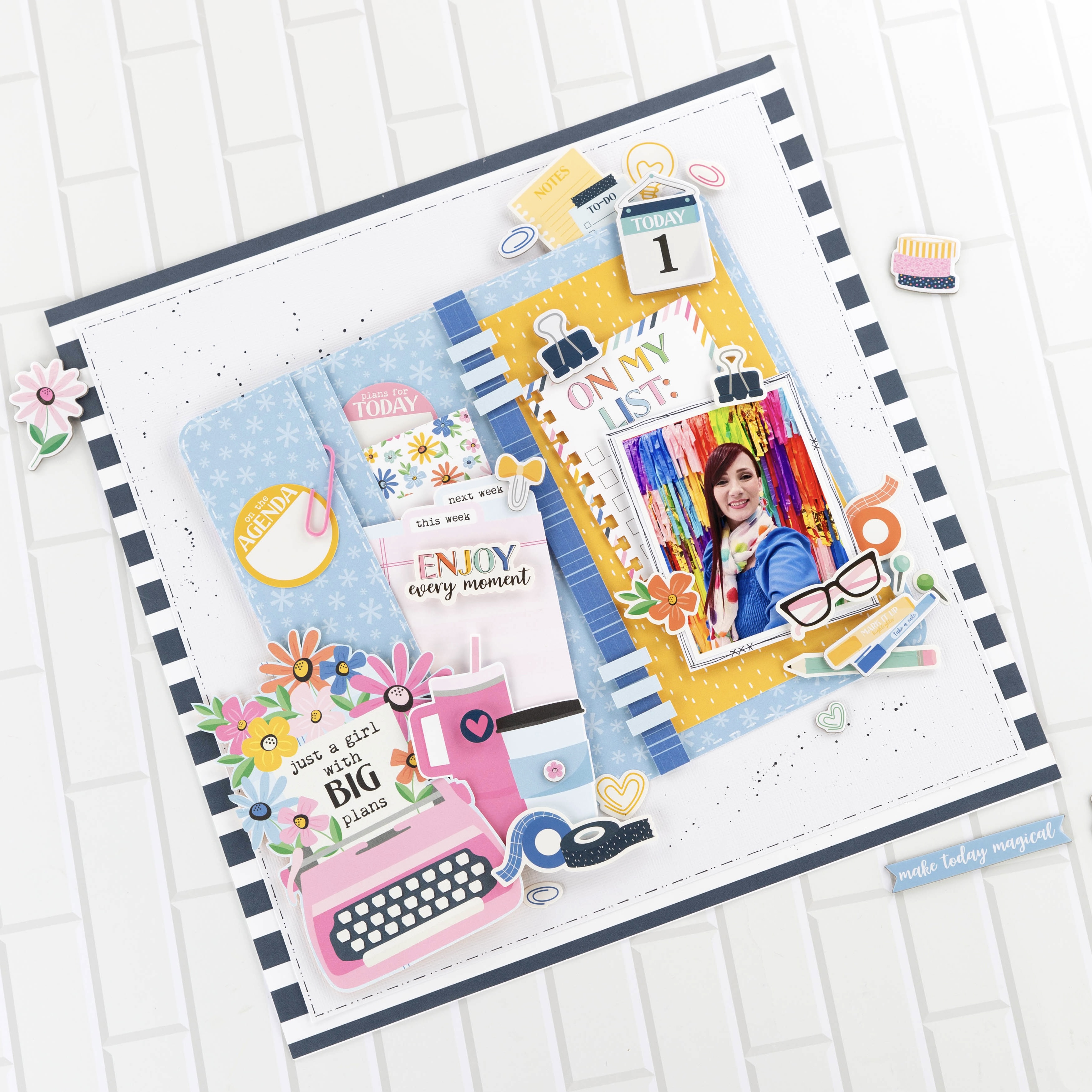 Documenting the everyday moments with this layout created using the new Plan On It collection! by Clean, cheerful, and perfect for preserving life as it happens.